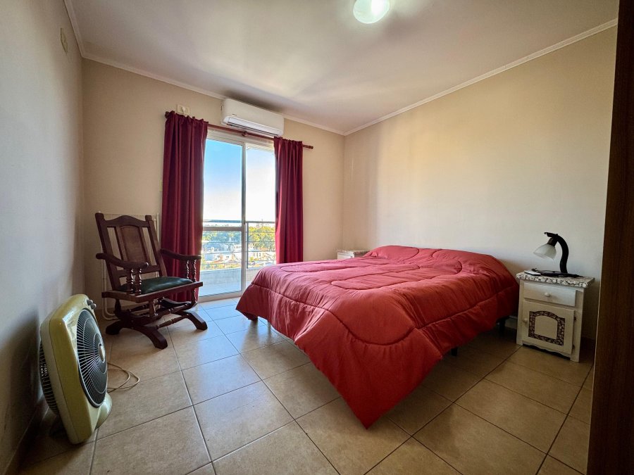 Somier de dos plazas, aire acondicionado frío/calor, ventilador y placard en dormitorio