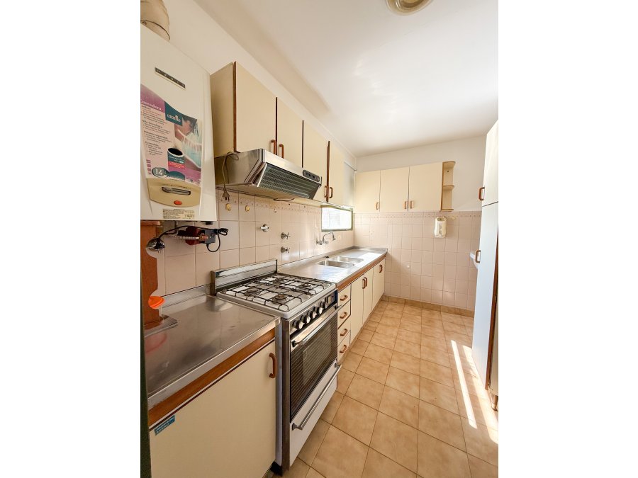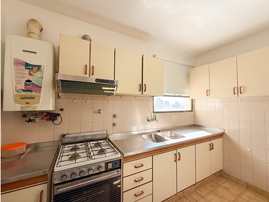Cuenta con estar-comedor con balcón, cocina separada y amueblada, baño social, 2 dormitorios con placares, baño completo y cochera cubierta.