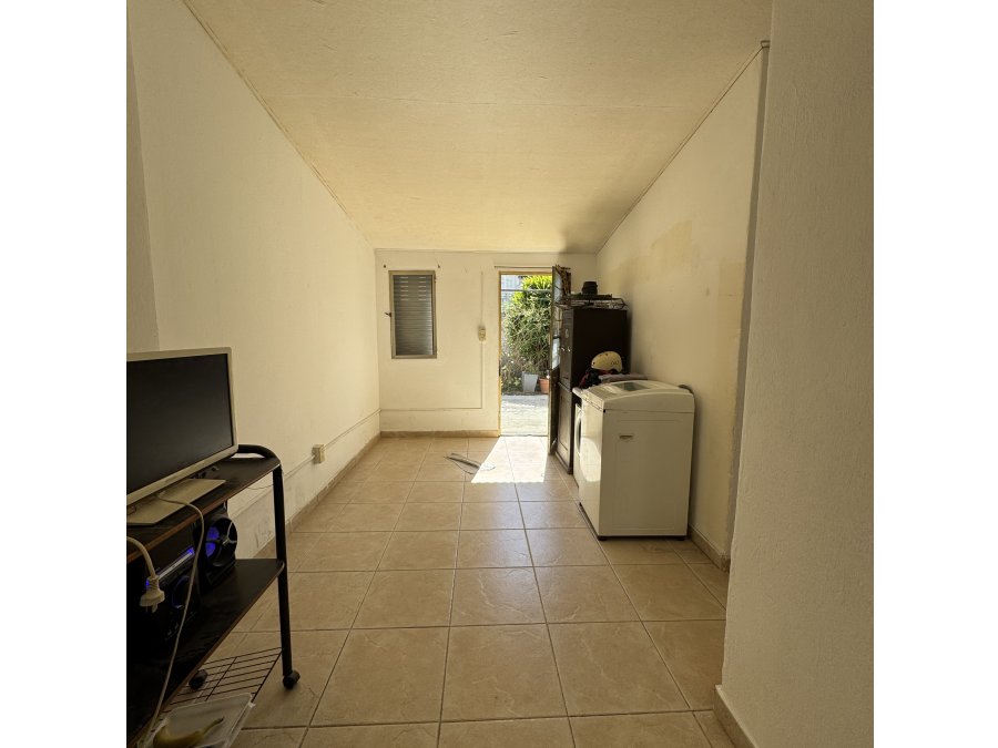 También cuenta con un dormitorio versátil (ideal como oficina o cuarto de huéspedes) y un baño de servicio. Al fondo, se desarrolla el patio seco principal con asador, ideal para disfrutar al aire libre. La propiedad dispone además de cochera cubierta con ingreso independiente al frente.
