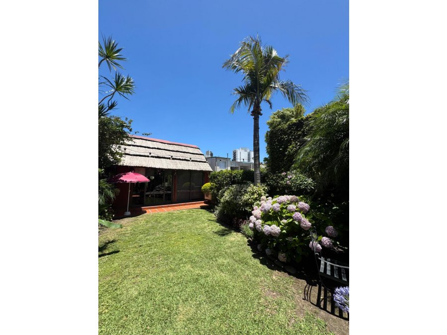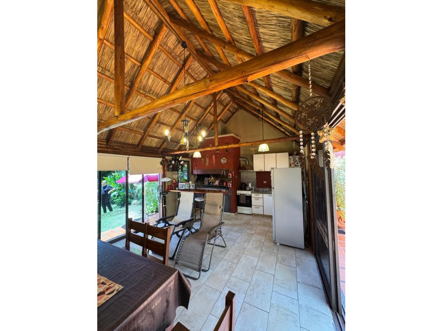 Amplio y cómodo quincho cubierto con parrilla, cocina toda equipada y un hermoso patio con césped.