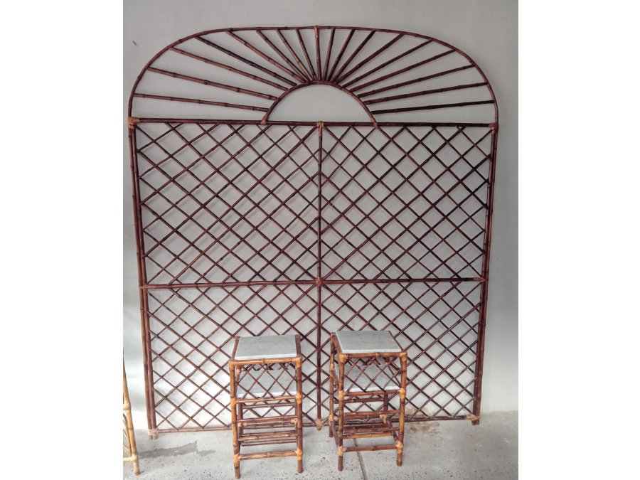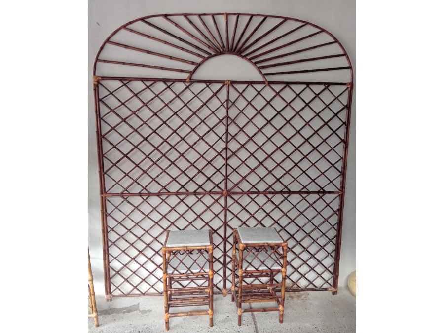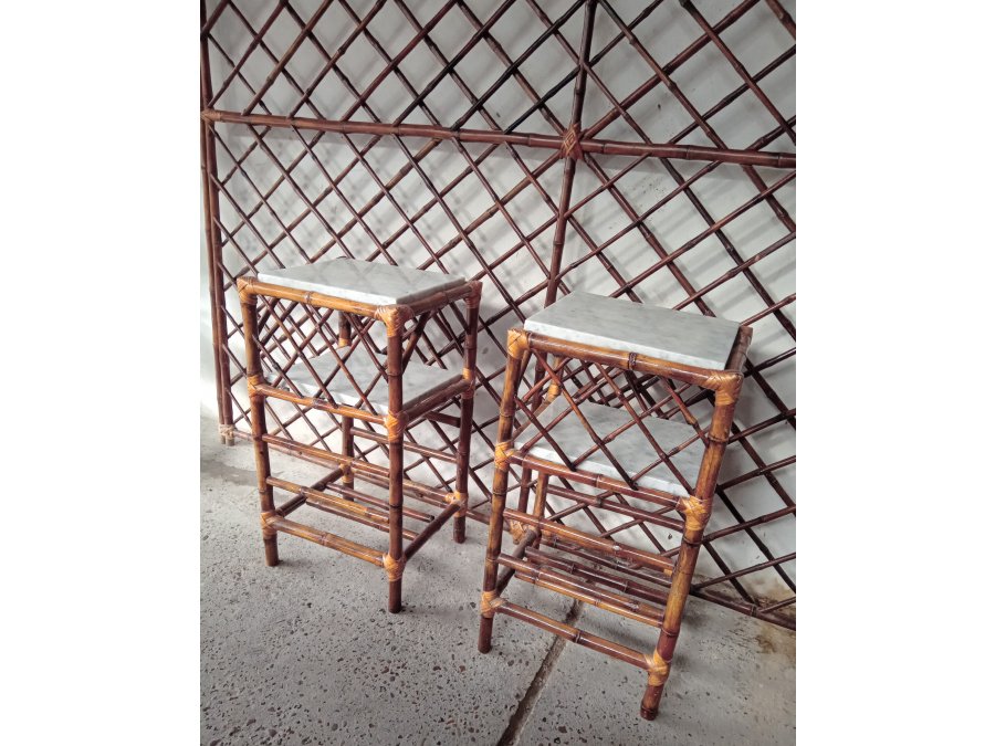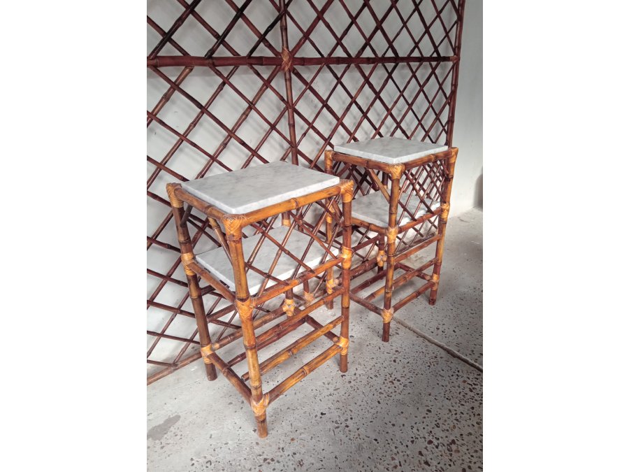 Mesitas de luz realizadas en caña, con sus estantes de marmol