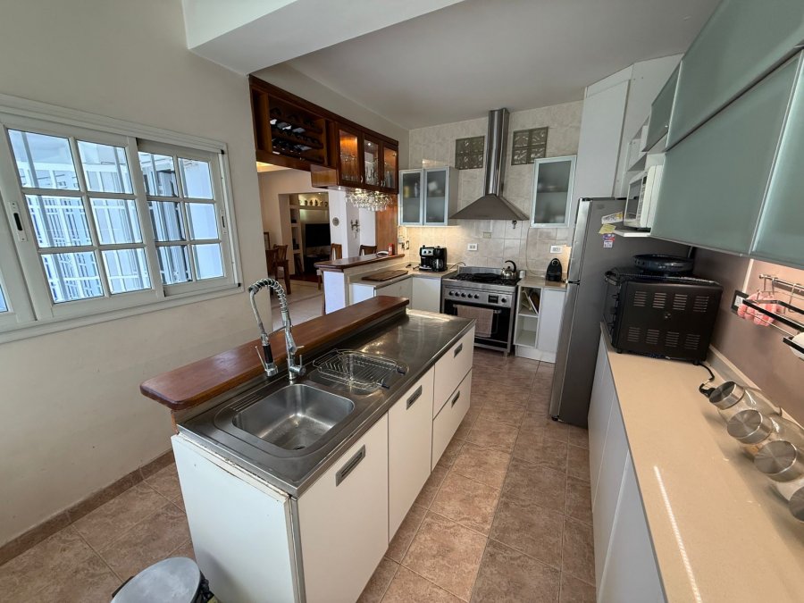 - Amplio comedor que linda con Cocina integrada , completa c/desayunador , isla central c/dos barras de madera, muebles Reno.