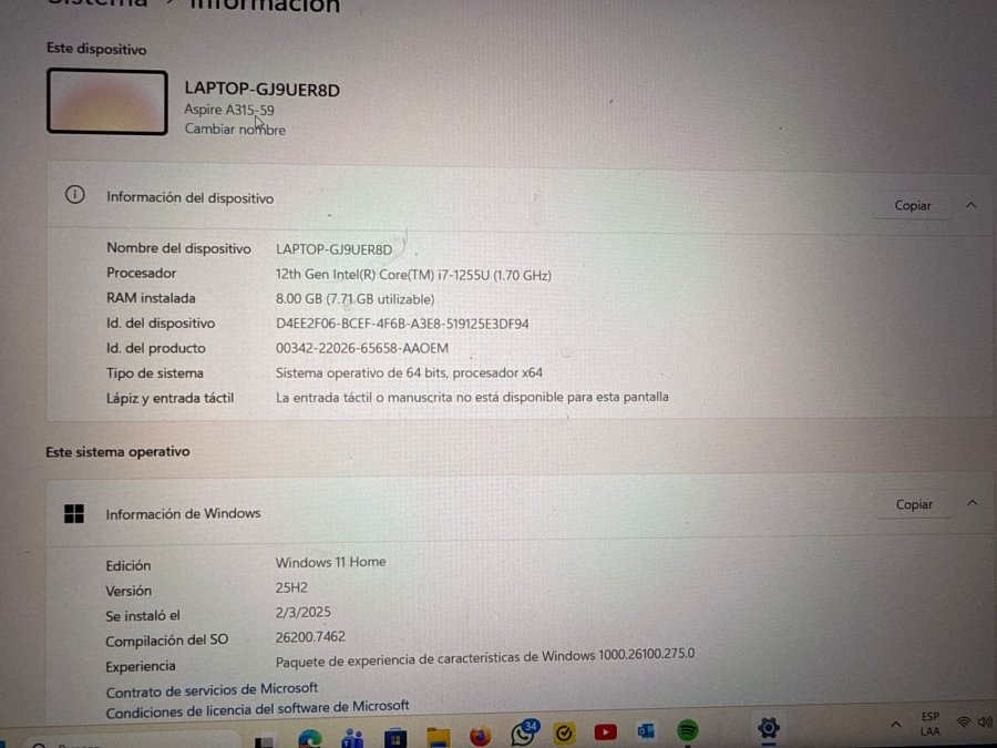 - Procesador : Intel Core i7-1255U (10 núcleos, 1.7 GHz, hasta