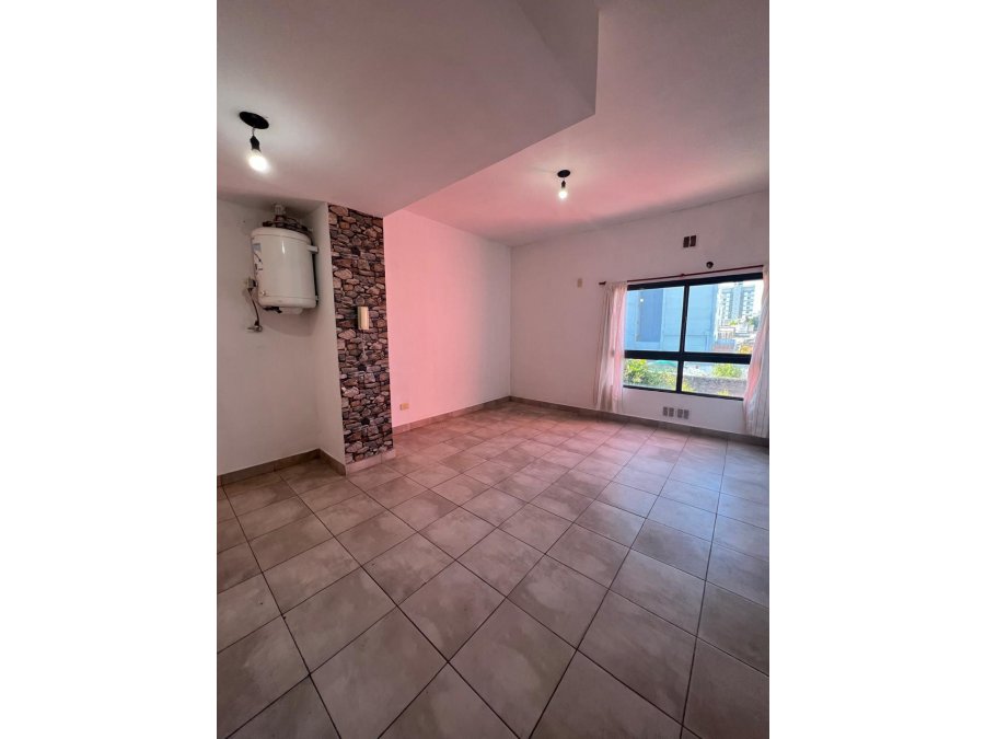 El departamento se encuentra en un segundo piso al contrafrente, lo que garantiza tranquilidad. Cuenta con un ambiente único que incluye termotanque, artefacto de cocina y purificador de aire, además de espacio para lavarropas y heladera. El baño es completo.