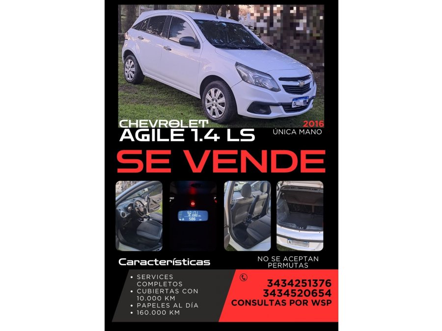 SE VENDE CHEVROLET AGILE 1.4 LS PRIMERA MANO EXCTE ESTADO