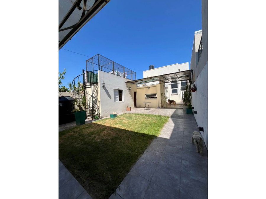 En planta baja, la casa cuenta con cochera para dos autos con portón levadizo automático, un living amplio y muy luminoso, una habitación y un baño social completo. un patio interno luminoso, cocina equipada y lavadero. En el exterior, dispone de patio seco y un sector con césped, además de un quincho, equipado con parrilla y baño completo.
