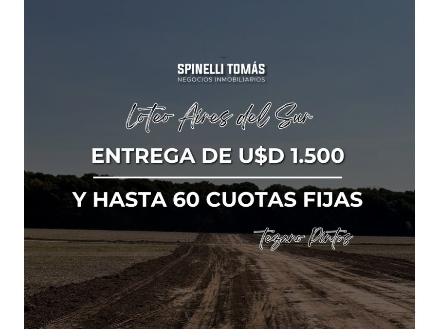 TERRENOS CON ENTREGA MINIMA Y HASTA 60 CUOTAS FIJAS