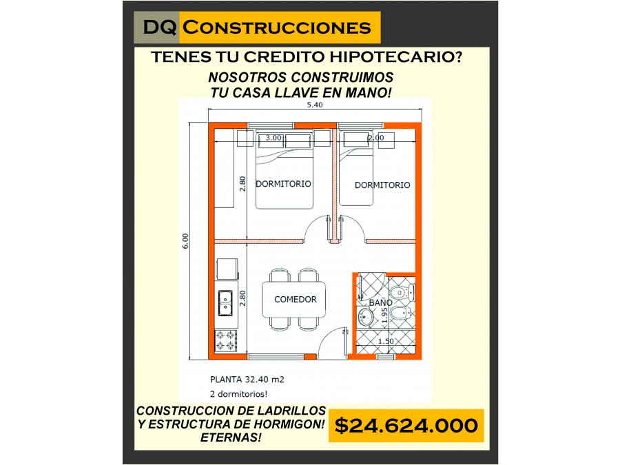 Tu vivienda de ladrillos al mejor precio del mercado y la mejor calidad!!!...2 DORMITORIOS!!!