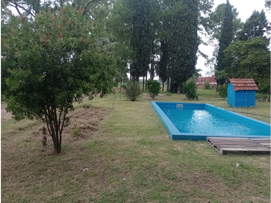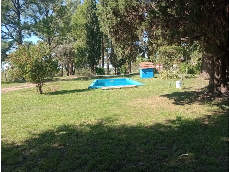 El inmueble cuenta con: tranquera de acceso, entrada vehicular. Piscina, churrasqueras. Una casa con habitaciones, baño, a restaurar, techo de loza a refaccionar, aberturas de madera, cocina con mesada de granito y azulejos, piso de baldosa cerámica. Estado general regular. Galpón, techo de chapa.