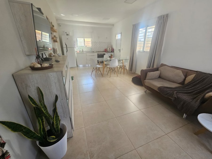 En el ingreso la casa cuenta con un living estar comedor integrado a cocina equipada, aparato cocina eléctrica tipo anafey horno eléctrico. Mesada bajo mesada.