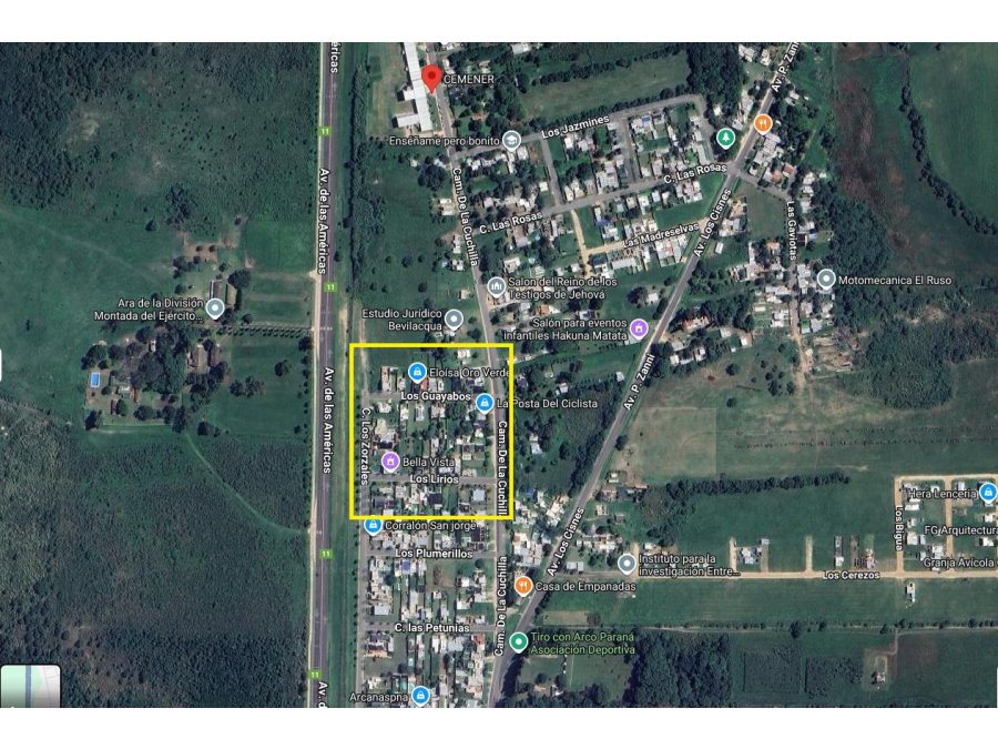 El terreno se encuentra entre medianeras, sobre calle C.Los Zorzales ( calle afaltada), a 300 metros del CEMENER.