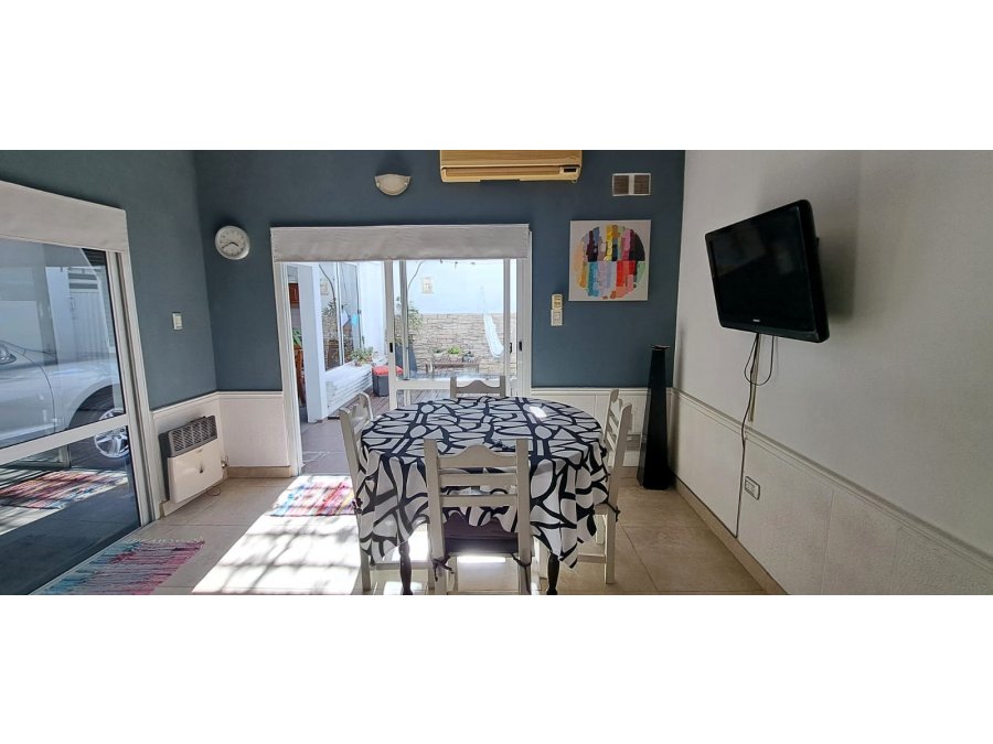 La porpieda se distribuye en, planta baja, un espacio social de living-estar amplio con hogar, que nos da acceso a un patio de invierno que conecta brindado mucha luz a la cocina totalmente amoblada con barra desayunadora e intregrada con el comedor, baño completo (bañera con jacuzzi), 2 habitaciones de buen tamaño, patio seco con baño de servicio y espacio de lavanderia, el cual conecta con la cocherra pasante, espacio de quincho con parrilla,