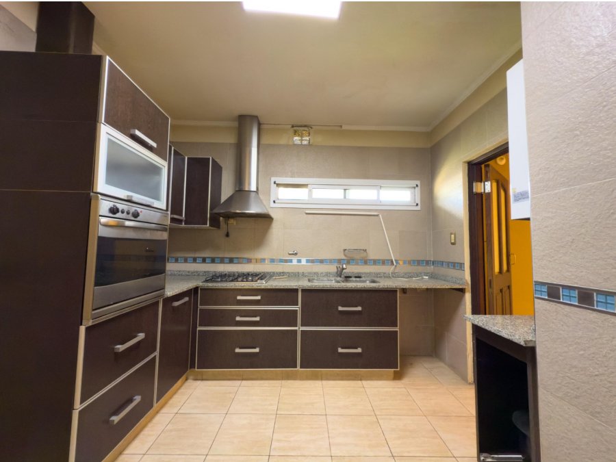 En planta baja cuenta con churrasquera, lavadero, un baño, cochera para cuatro vehículos y un patio posterior que aporta luminosidad y ventilación.