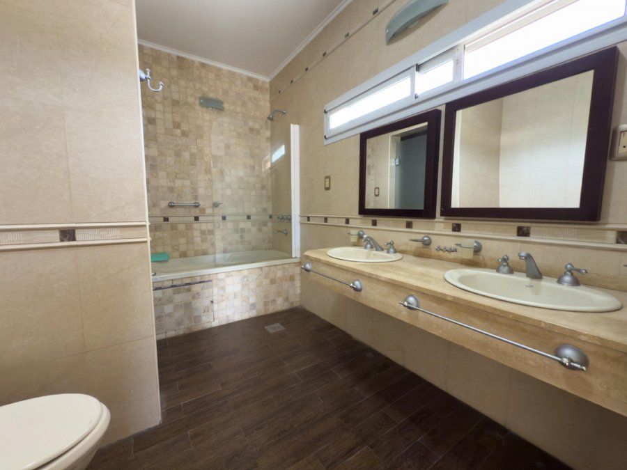 Acceso principal por escalera que conduce al segundo piso, donde se encuentran el living comedor con hogar, cocina separada, tres habitaciones, una oficina y dos baños completos.