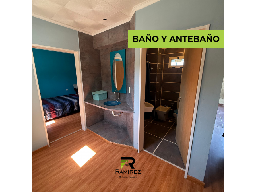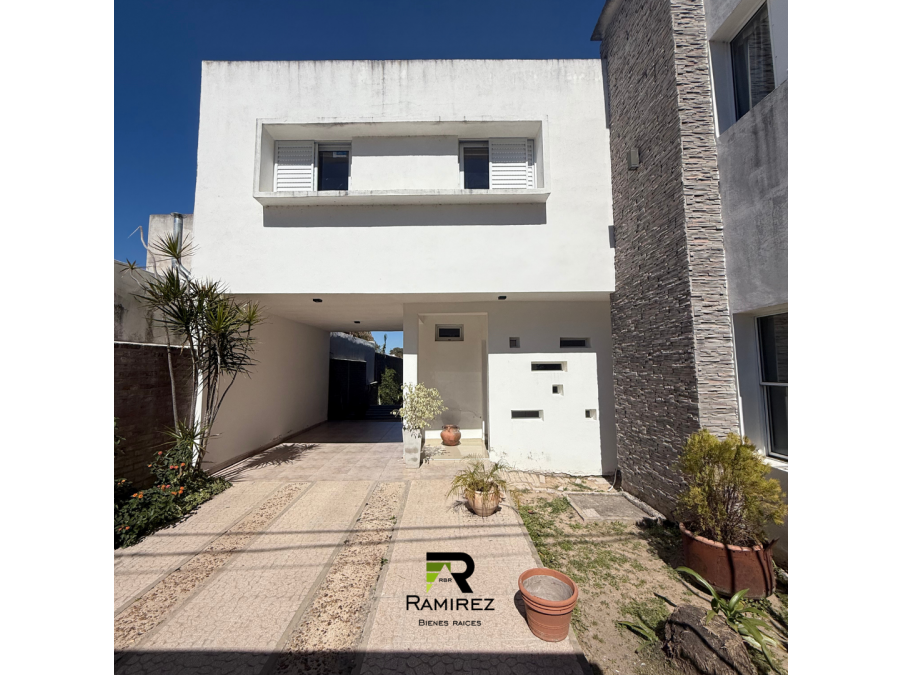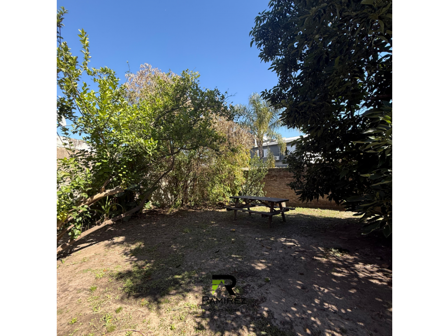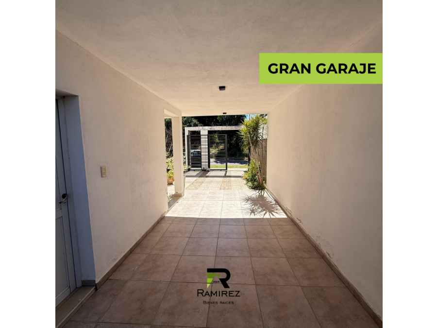 PB: living, cocina comedor, 1 baño social, quincho/galería cerrada, garaje para 2 autos, fondo con verde en desnivel.