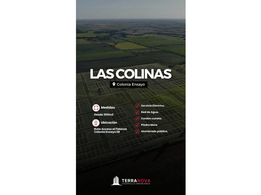 🔹 Loteo LAS COLINAS, ubicado en Colonia Ensayo, ofrece lotes de 300 m² ideales para construir tu hogar en un entorno de tranquilidad y seguridad, a solo 20 minutos de la ciudad de Paraná.