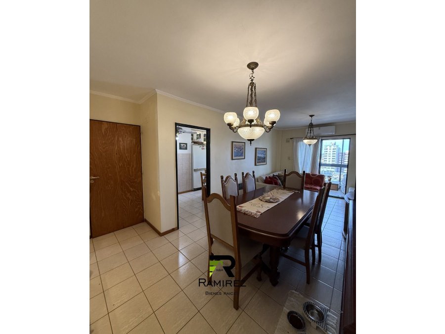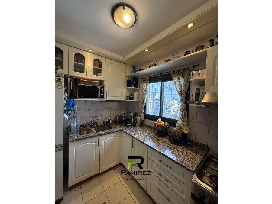 Cocina independiente con espacioso living comedor, tres dormitorios, dos baños, dos balcones con gran vista y cochera semi cubierta.