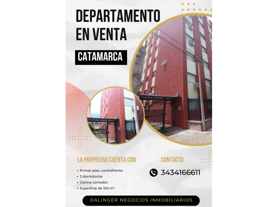 Se vende Dpto. en calle Catamarca N° 246, primer piso, contra frente, con una superficie de 100 m2 aprox.
