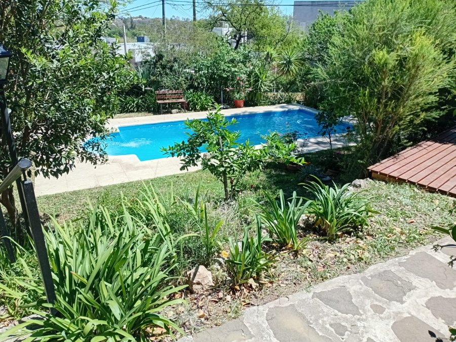 La propiedad se asienta sobre un generoso lote de 1532 m² , destacándose por un extenso jardín parquizado con flora y árboles frutales, que ofrece total privacidad. La Casa Principal se distribuye en dos plantas: la Planta Baja cuenta con una Galería Semicubierta con Parrilla y un área integrada de Living, Comedor y Cocina muy luminosa; Además, incluye 2 amplios dormitorios , baño completo, lavadero y un patio seco con horno de barro. La Planta Alta alberga el Dormitorio Principal con vestidor y baño en suite , junto a una habitación ideal como Estudio , que ofrece la mejor vista a la ciudad. En el exterior, el jardín conduce a la piscina , que está lista para usar y cuenta con su propio baño y ducha.