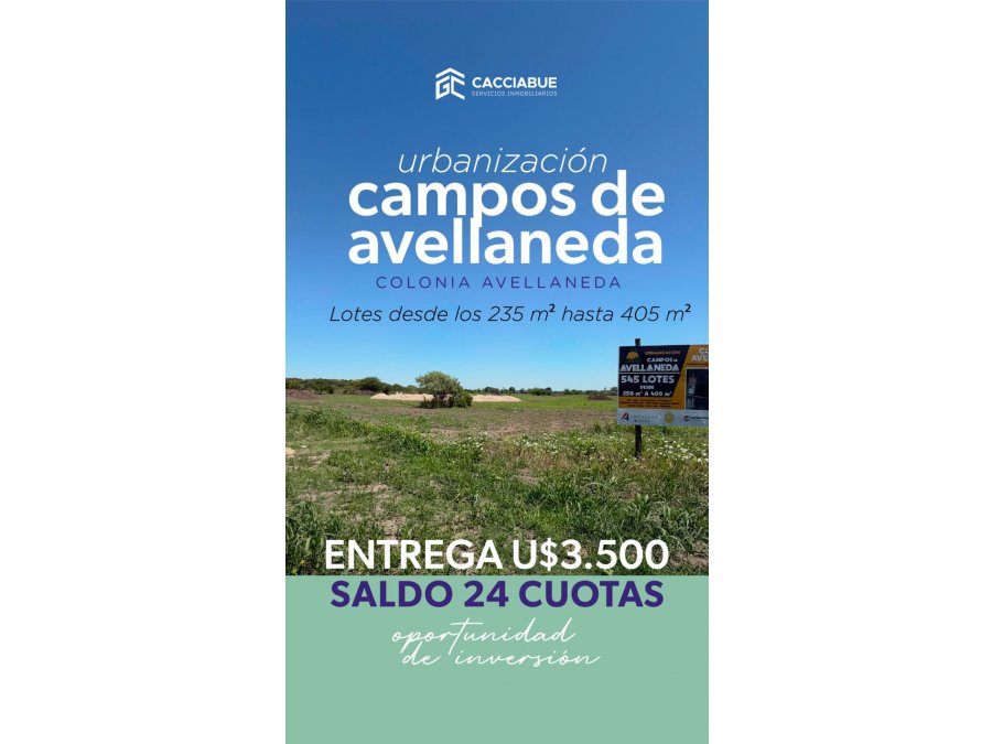 VENTA TERRENOS COL. AVELLANEDA - FINANCIADOS HASTA 24 CUOTAS